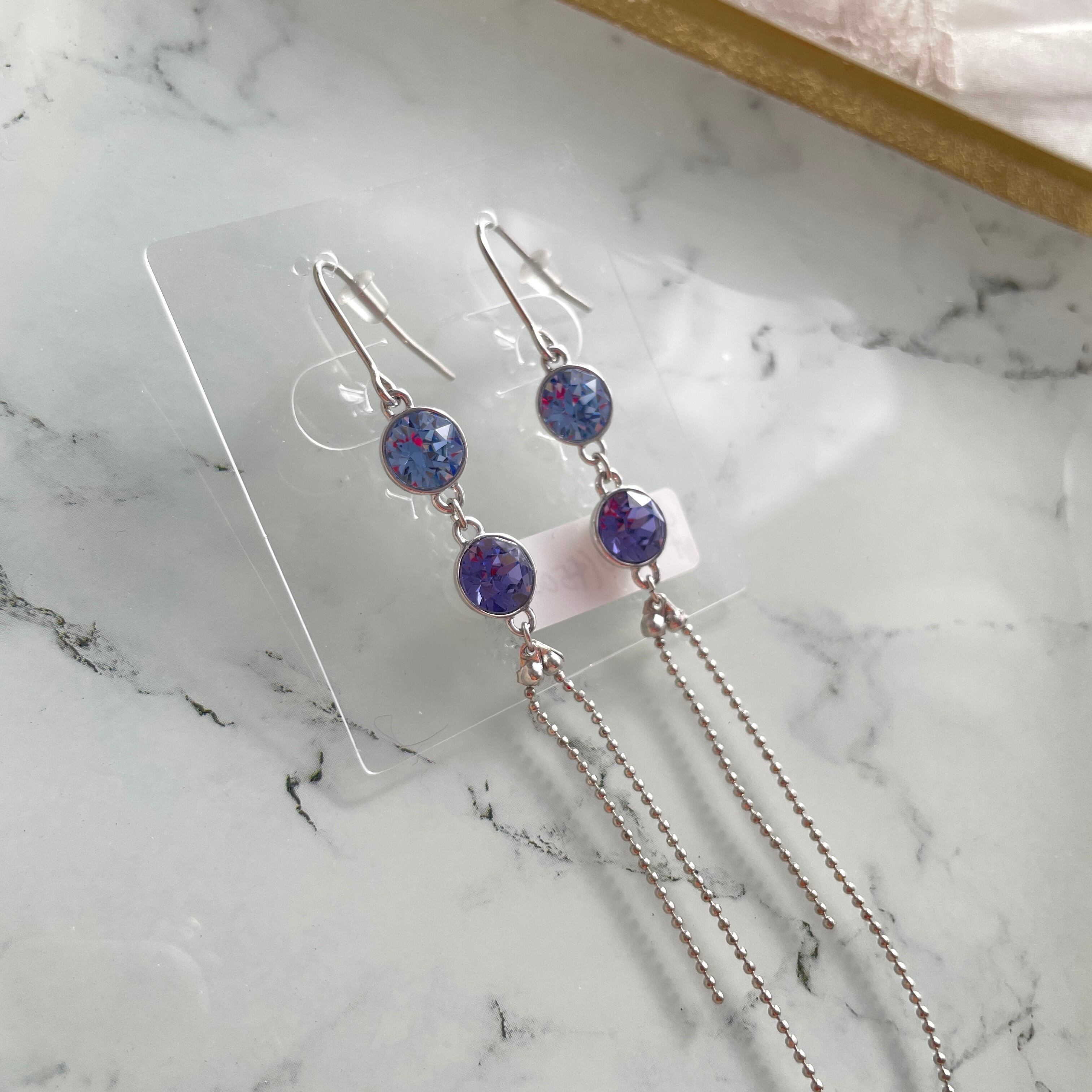 繊細なチェーンとカラフルなクリスタルガラス。